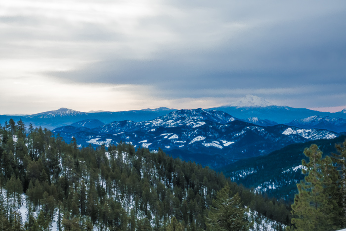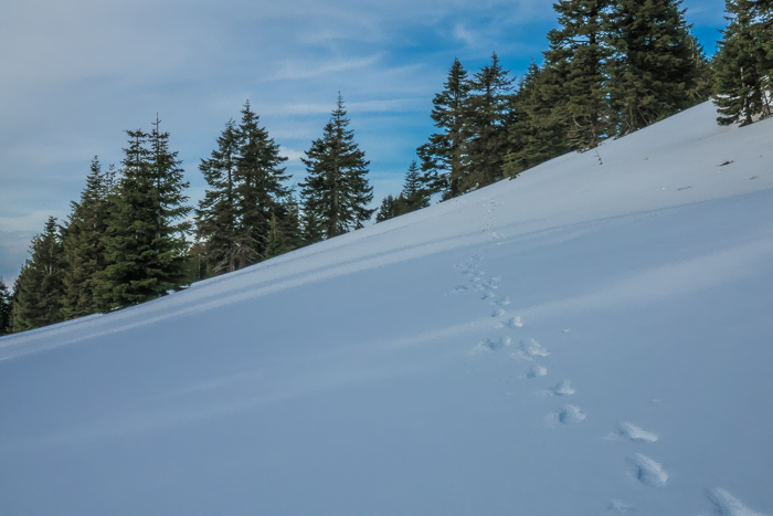 In new areas I take paper maps (in case phone batteries die). At all times I have an exit plan in mind. In winter, the main direction is down to below snow line, but often there is a clear difference whether down is to the left or the right. For example, except for the last two miles headed south to the border, the best direction was down to the north in the direction of Applegate, Ashland, etc… I also carry a little compass permanently attached to a strap on my backpack for easy reference.
