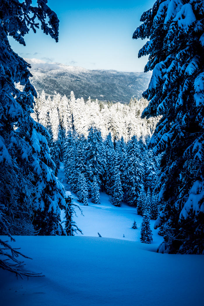 Therefore, why rush? If my only goal was to get from A to B, then I should take a plane! I enjoyed the beauty and the soft swish of the skis. It occurred to me that beautiful snow is slow snow. Fast snow is partly melted and packed and has had time to accumulate debris from the trees. Beautiful snow is fresh and fluffy powder that glistens and sparkles. The ideal is the combination of the two with a few inches of powder on top of a packed (not icy) base.