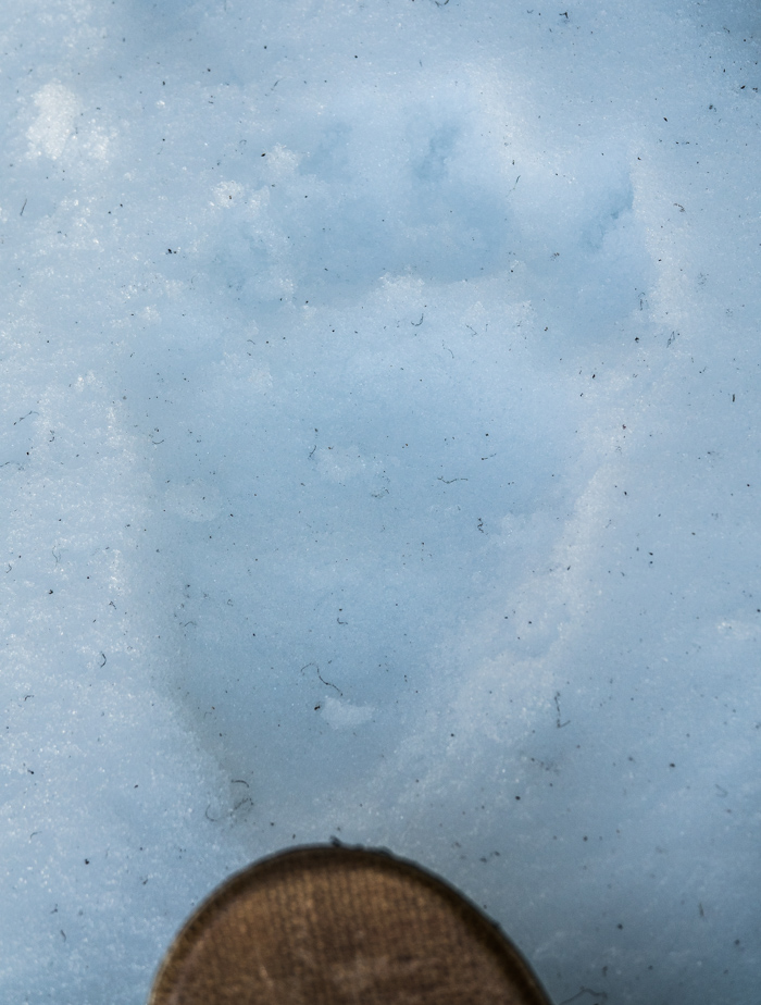 I did not go much farther before encountering a long set of tracks that crossed the lake and entered the woods.