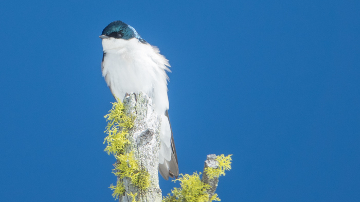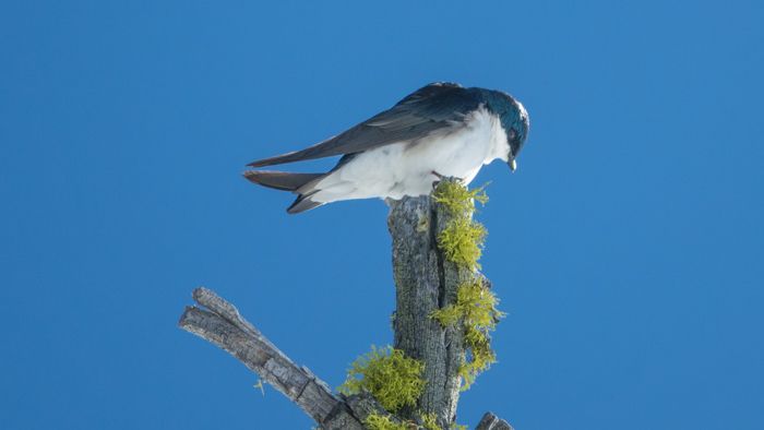 Tree swallow at the top of a snag next to Long Lake