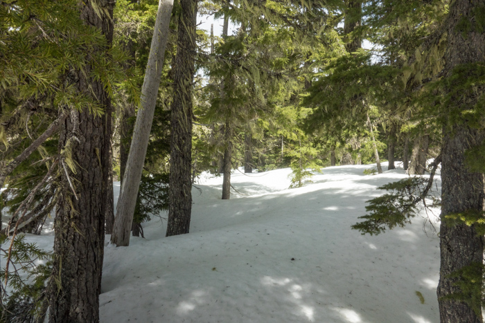 The next several hours were spent cruising through the woods on the gently rolling hills at the 6000 foot elevation. This is what I have been waiting for. This is my backyard. Even though I have not hiked through every square foot of Sky Lakes Wilderness, the mountains, the lakes, the terrain are all familiar.