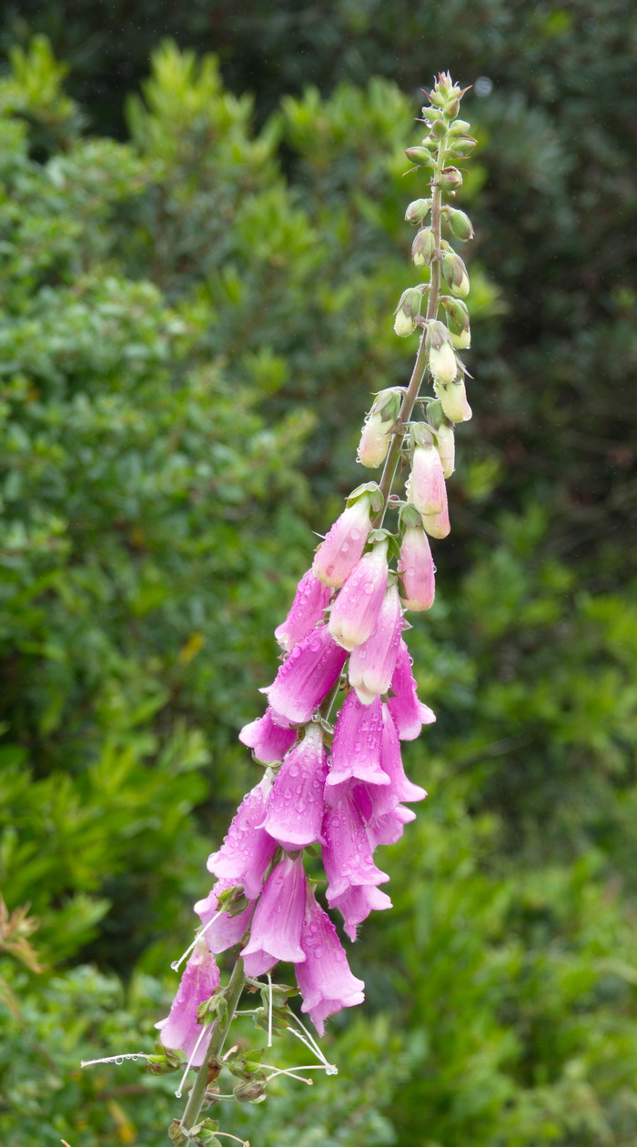 A foxglove still wet with morning mist