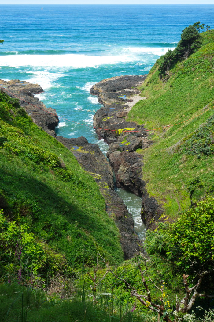 Another place that must be visited, and is easily accessible via a short trail, is the Devil’s Churn. A deep inlet cutting into the coast, this place can be almost mesmerizing as the surf goes in and out. If tide and wind and other factors come together right, you will be able to see the water explode upward in giant plumes.