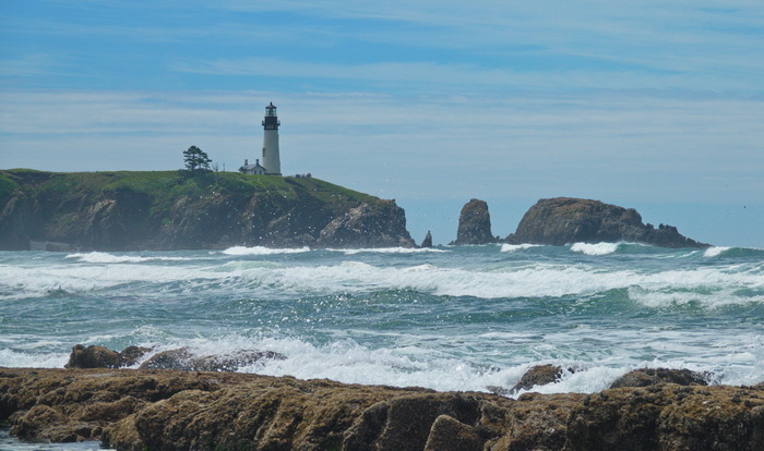 From Cape Perpetua, I headed north to Yaquina Head Lighthouse. (see map below) When I turned off Highway 101 to head west on Lighthouse Drive, I realized I had made a big mistake. The line of vehicles waiting to enter stretched almost to the highway and included several tour buses. When I saw there was an entrance fee, I decided I did not want to pay to be suffocated in a swirling crowd. I left to search for alternatives.