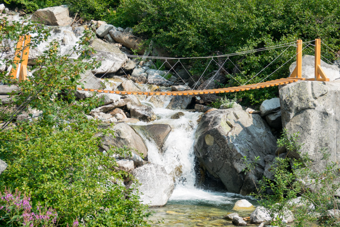 Just outside the wilderness boundary, this bridge was built over Agnes Creek with steel and flair.