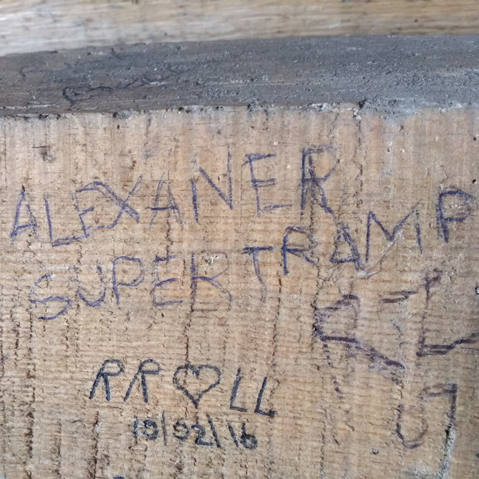 I didn’t see anyone all day until 8pm when the groomer stopped by to restock the wood supply. It was the same guy from Crescent Lake the week before! He recognized me also and we chatted a while. Then he pointed out a name scratched on the wall- Alexander Supertramp. He couldn’t be sure, but he really hoped it was the signature of the guy in the movie and the books.